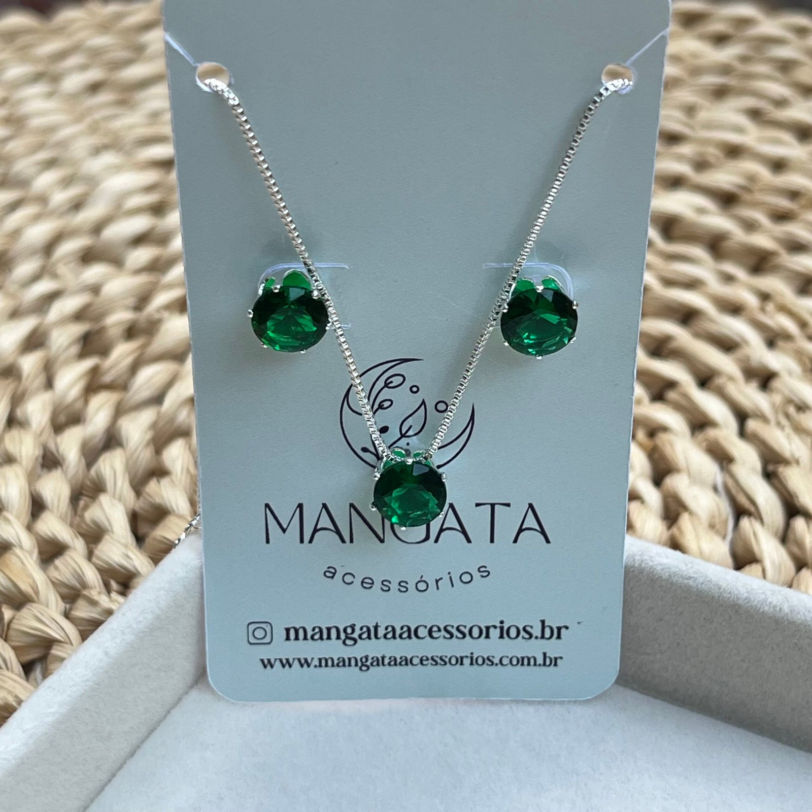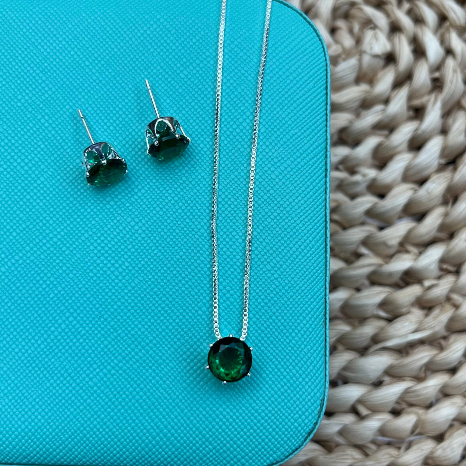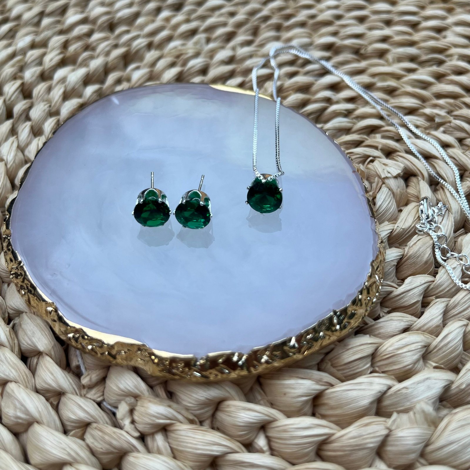 Seja o primeiro a avaliar “Conjunto Brinco e Colar Ponto de Luz Redondo Verde Esmeralda”